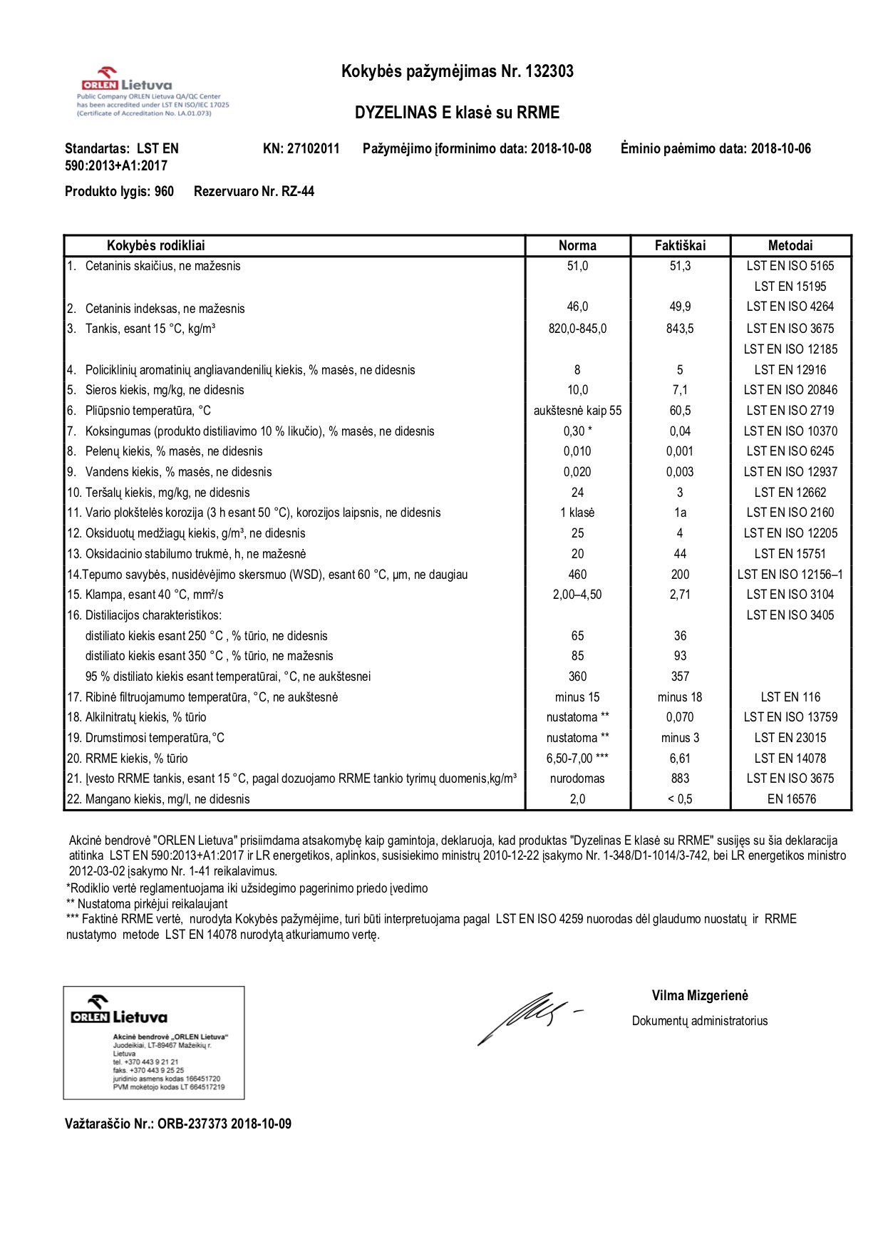 Dyzelinas su RRME; (pagaminta Orlen Lietuva)